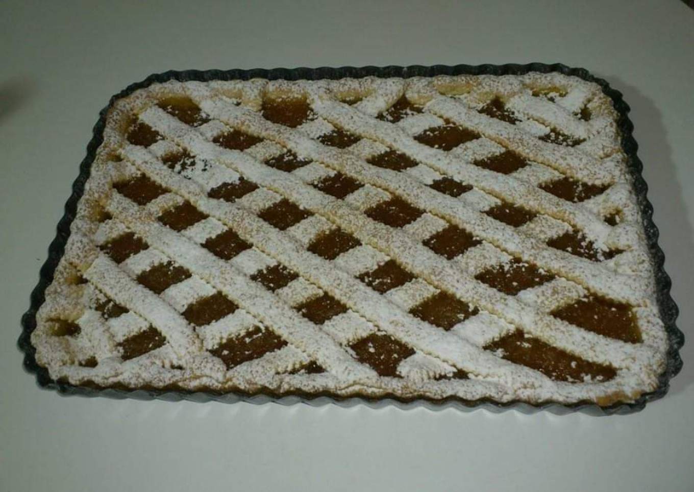 - Etalez le reste la pâte, coupez des bandelettes avec une roulette a pâtisserie et faites le cadrillage.