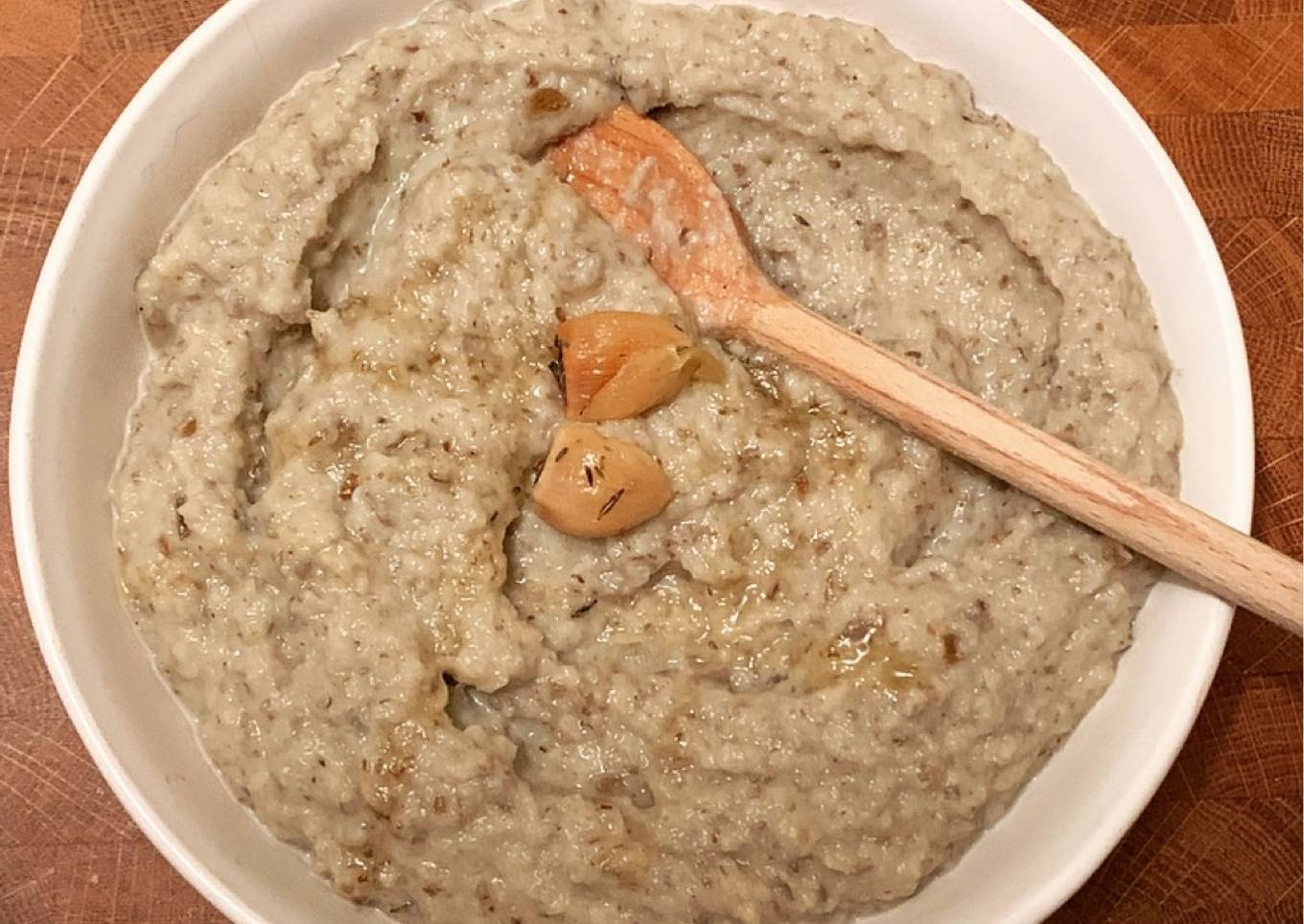 - Servir dans un bol ou dans une assiette creuse et déposer un peu de noisettes torréfiées et d'ail rôtis par-dessus