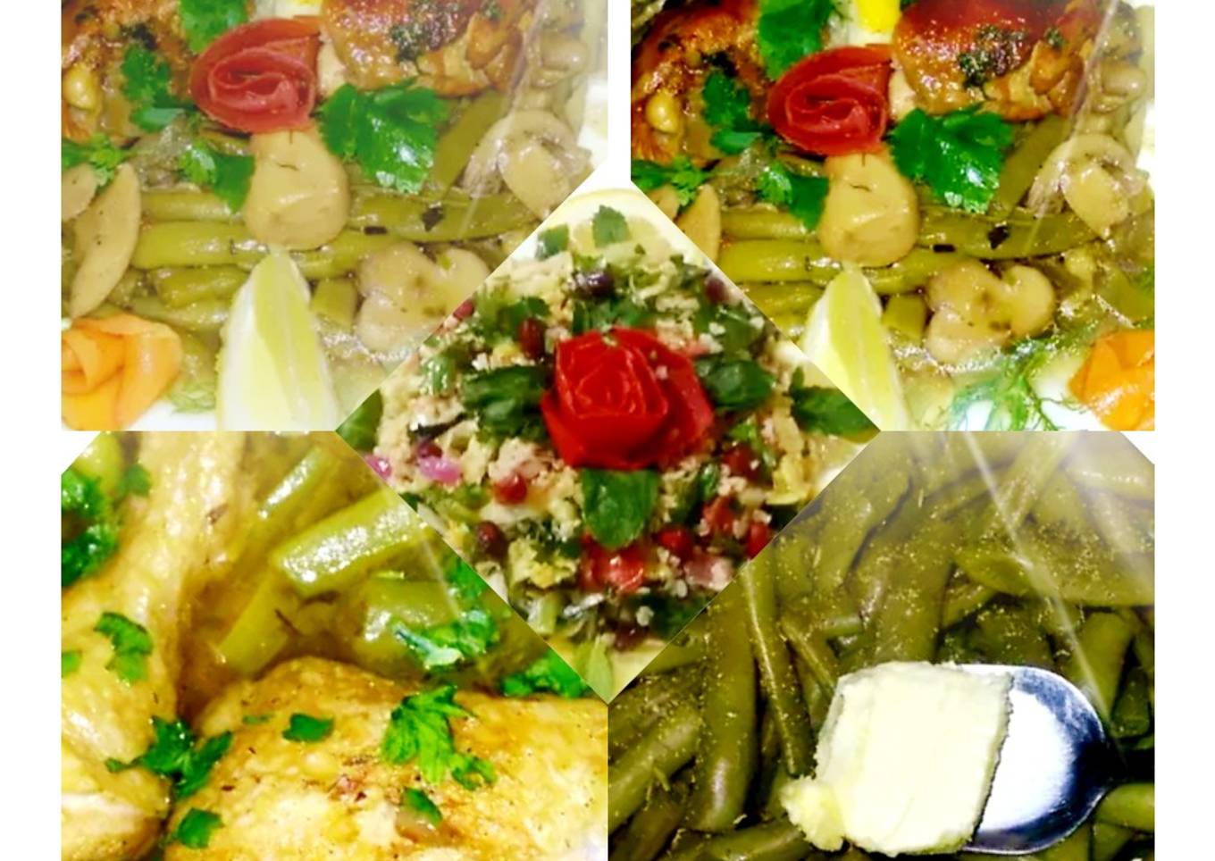 #okm Haricots verts de jardin et au poulet de la ferme , champignons de montagne , citron tous ça au four