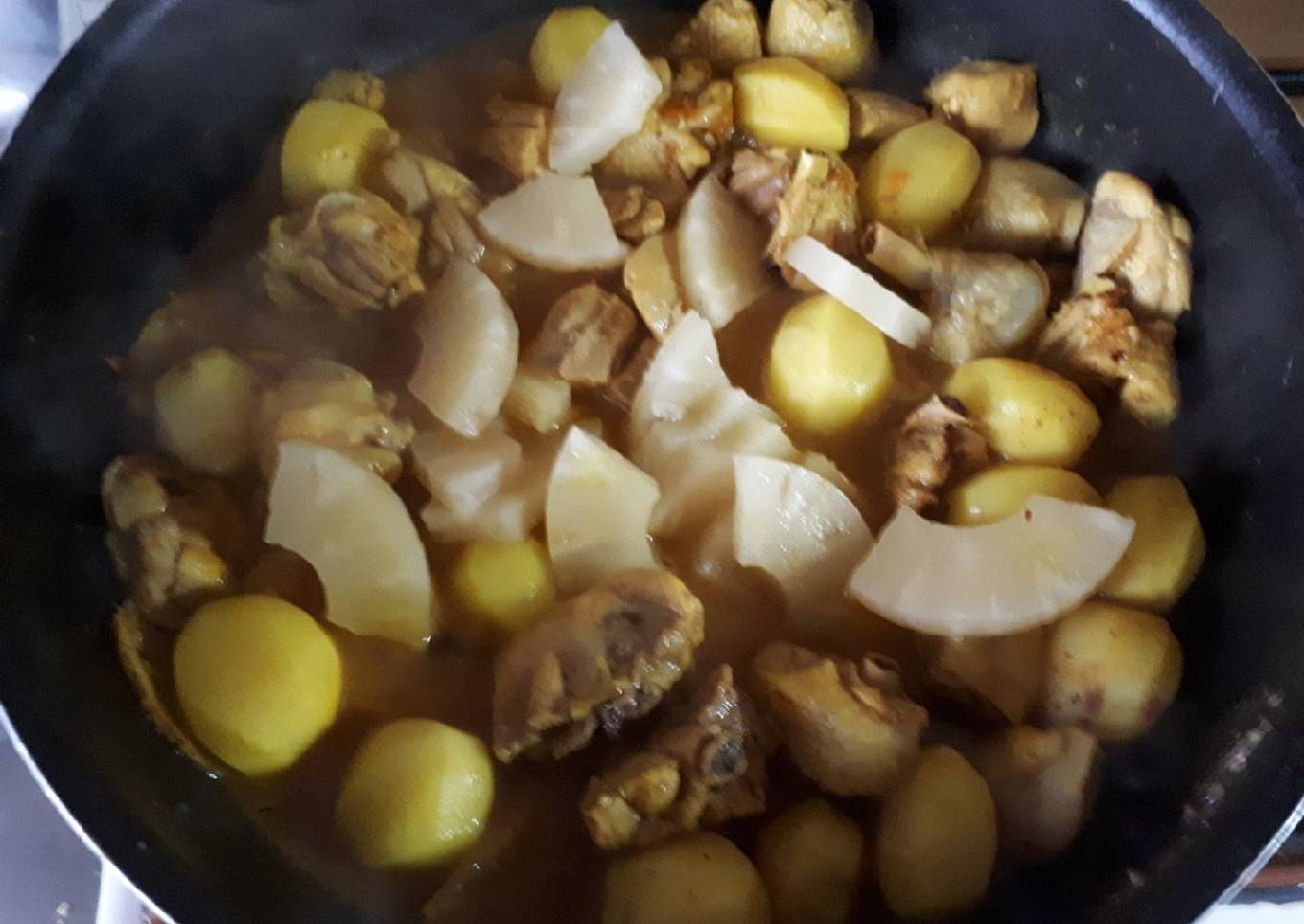 Steps to make to make Volaille et pommes de terre au curry et ananas